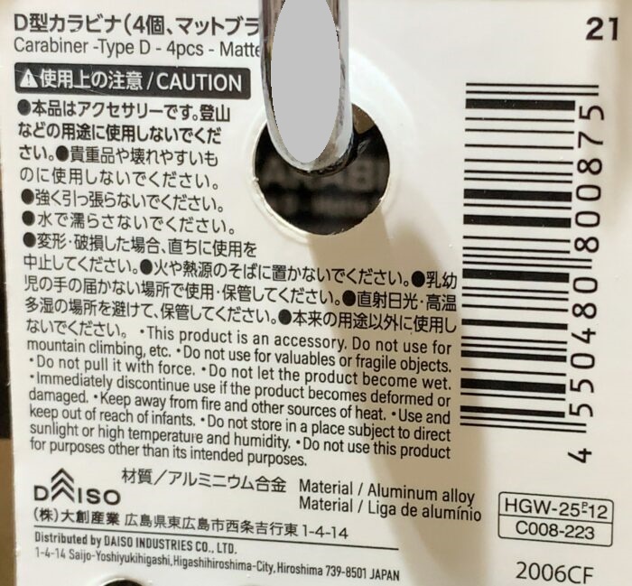 ホーム > ダイソー探険 / キーホルダー・ストラップ DAISO(ダイソー)探険「カラビナ」 小物等を吊下げる D型・マットブラック 4個 商品番号 4550480800875 材質 アルミニウム合金 本品はアクセサリーです。 登山などの用途に使用しないでください。 スポンサーリンク 関連投稿 ダイソー探険 / 食品 DAISO(ダイソー)探険「ダブル食感フルーツグミ」 ダイソー探険 / カバン DAISO(ダイソー)探険「アルミソフトクーラーバッグ」 ダイソー探険 / 食品 DAISO(ダイソー)探険「広島県産 世羅なしキャンディ」 ダイソー探険 / 飾り DAISO(ダイソー)探険「バルーン花束」 ダイソー探険 / 衣類 DAISO(ダイソー)探険「静音アルミポンチョ」 ダイソー探険 / キッチン DAISO(ダイソー)探険「アニマルコルク鍋敷き」 前の投稿 DAISO(ダイソー)探険「静音アルミポンチョ」 次の投稿 DAISO(ダイソー)探険「バルーン花束」