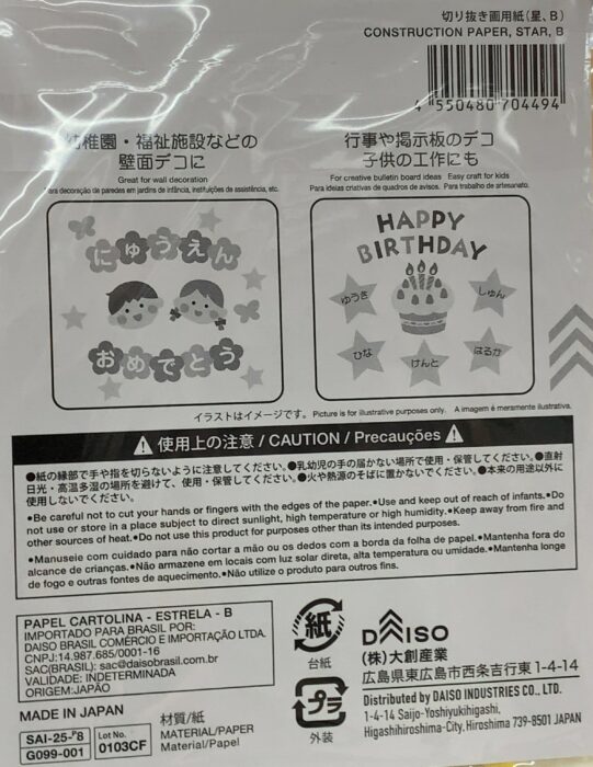 DAISO(ダイソー)探険「切り抜き画用紙 星、B」