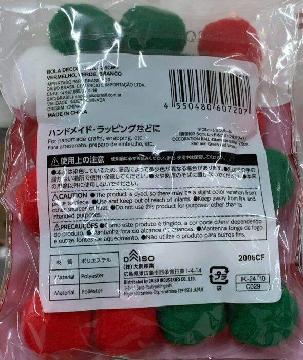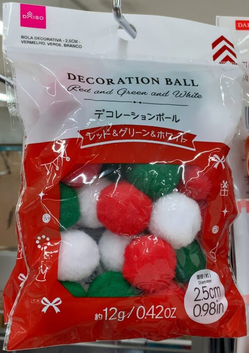 ホーム > ダイソー探険 / 飾り DAISO(ダイソー)探険「デコレーションボール」 ハンドメイド・ラッピングなどに レッド&グリーン&ホワイト 約12g 商品番号 4550480607207 原産国 中国 材質 ポリエステル サイズ 2.5×2.5×2.5cm クリスマスカラー スポンサーリンク 関連投稿 ダイソー探険 / キッチン DAISO(ダイソー)探険「まな板キャッチャー」 ダイソー探険 / 食品 DAISO(ダイソー)探険「ダブル食感フルーツグミ」 ダイソー探険 / カバン DAISO(ダイソー)探険「アルミソフトクーラーバッグ」 ダイソー探険 / 食品 DAISO(ダイソー)探険「広島県産 世羅なしキャンディ」 ダイソー探険 / 飾り DAISO(ダイソー)探険「バルーン花束」 ダイソー探険 / キーホルダー・ストラップ DAISO(ダイソー)探険「カラビナ」 前の投稿 DAISO(ダイソー)探険「まな板キャッチャー」