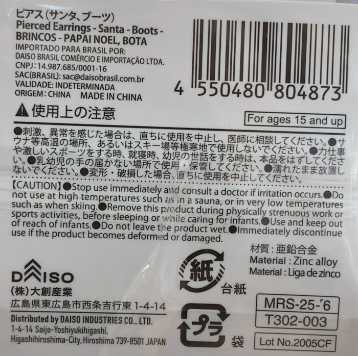 ホーム > ダイソー探険 / アクセサリー DAISO(ダイソー)探険「ピアス(サンタ)」 クリスマスモチーフピアス クリスマスを楽しもう! 商品番号 4550480804873 原産国 中国 材質 亜鉛合金 サイズ 1×1.3×1.5cm スポンサーリンク 関連投稿 季節の商品 / ダイソー探険 / ミニチュアオブジェ DAISO(ダイソー)探険「ミニツリー(ボール付)」 ダイソー探険 / 掃除 DAISO(ダイソー)探険「ヘアブラシクリーナー(洗えるタイプ)」 ダイソー探険 / ミニチュアオブジェ / おもちゃ DAISO(ダイソー)探険「おままごと(アクセサリーセット)」 ダイソー探険 / 衛生品 DAISO(ダイソー)探険「玄関・お部屋の芳香剤」 ダイソー探険 / かがみ DAISO(ダイソー)探険「ダイカットハンドミラー(ミッキー)」 ダイソー探険 / 飾り DAISO(ダイソー)探険「デコレーションボール」 前の投稿 DAISO(ダイソー)探険「ダイカットハンドミラー(ミッキー)」 次の投稿 DAISO(ダイソー)探険「玄関・お部屋の芳香剤」