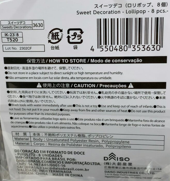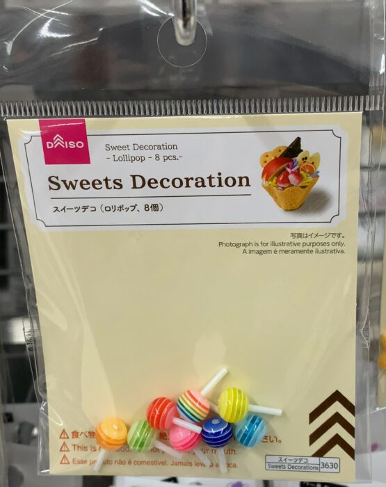 ホーム > ダイソー探険 / 食品ミニサンプル DAISO(ダイソー)探険「スイーツデコ」 スイーツのミニチュアを作れる ロリポップ 8個 商品番号 4550480353630 原産国 中国 材質 不飽和ポリエステル樹脂、ポリプロピレン サイズ 0.8cm×0.8cm×1.5cm スポンサーリンク 関連投稿 ダイソー探険 / キッチン DAISO(ダイソー)探険「納豆パックがピッタリ入る冷蔵庫収納ホルダー」 ダイソー探険 / 工具 DAISO(ダイソー)探険「シート押さえ杭」 ダイソー探険 / キッチン DAISO(ダイソー)探険「ピックス ミッフィー」 ダイソー探険 / キッチン DAISO(ダイソー)探険「抗菌指がおかずにつかないピックス」 ダイソー探険 / おもちゃ DAISO(ダイソー)探険「ままごとバーガー」 ダイソー探険 / 遊び・スポーツ・アウトドア / 生き物関連 DAISO(ダイソー)探険「ソルト用ジグヘッド」 前の投稿 DAISO(ダイソー)探険「納豆パックがピッタリ入る冷蔵庫収納ホルダー」