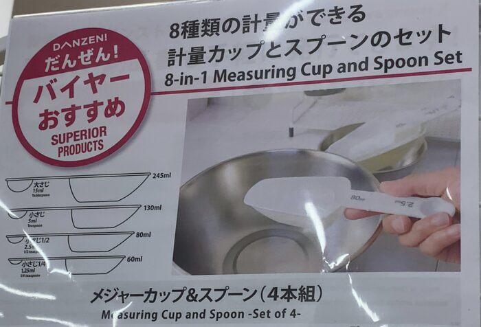 ホーム > ダイソー探険 / キッチン DAISO(ダイソー)探険「メジャーカップ&スプーン」 だんぜん!バイヤーおすすめ 8種類の計量ができる 計量カップとスプーンのセット 4本組 税込220円 商品番号 4550480708898 原産国 中国 材質 ポリプロピレン 内容量 4個入 耐熱温度 120℃ スポンサーリンク 関連投稿 ダイソー探険 / 補修 DAISO(ダイソー)探険「すきまテープ」 ダイソー探険 / 衛生品 DAISO(ダイソー)探険「アロマディフューザー」 ダイソー探険 / キッチン DAISO(ダイソー)探険「シリコーン伸びラップ」 ダイソー探険 / 文房具 DAISO(ダイソー)探険「レースペーパー」 ダイソー探険 / 文房具 DAISO(ダイソー)探険「ハイエンドステーショナリーハサミ」 ダイソー探険 / キッチン DAISO(ダイソー)探険「ウィムッシュ ちょい混ぜ マドラー」 前の投稿 DAISO(ダイソー)探険「すきまテープ」