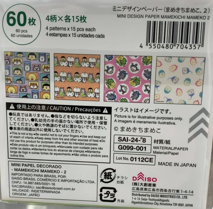 DAISO(ダイソー)探険「まめきちまめこ ニートの日常 ミニデザインペーパー」