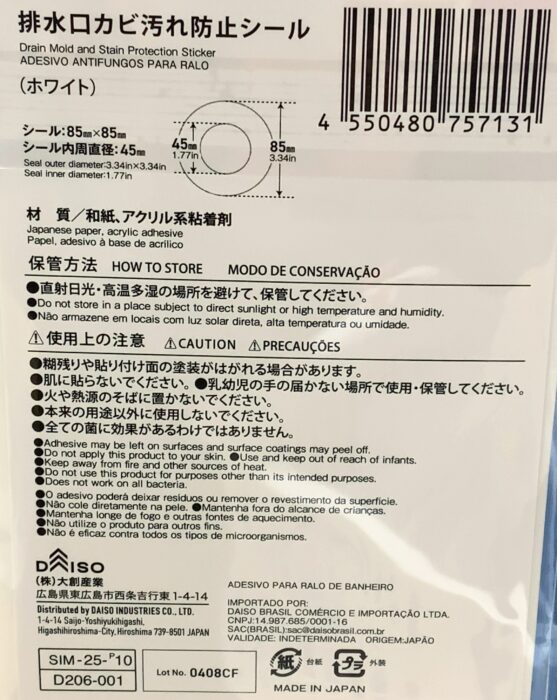 DAISO(ダイソー)探険「排水口カビ汚れ防止シール」