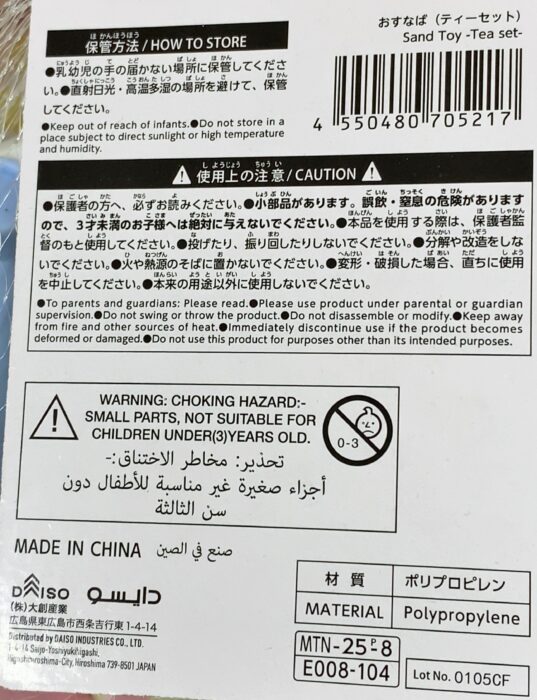 ホーム > ダイソー探険 / おもちゃ DAISO(ダイソー)探険「おすなばティーセット」 砂場でおままごとができる! 税込220円 商品番号 4550480705217 原産国 中国 材質 ポリプロピレン スポンサーリンク 関連投稿 ダイソー探険 / キッチン DAISO(ダイソー)探険「アニマルコルク鍋敷き」 ダイソー探険 / キッチン DAISO(ダイソー)探険「クッキー抜型」 ダイソー探険 / 飾り DAISO(ダイソー)探険「ハニカムオーナメント」 ダイソー探険 / キッチン DAISO(ダイソー)探険「水草コースター」 ダイソー探険 / 文房具 DAISO(ダイソー)探険「カラーモールA」 ダイソー探険 / 衣類 DAISO(ダイソー)探険「Vネックインナーシャツ」 前の投稿 DAISO(ダイソー)探険「ハニカムオーナメント」 次の投稿 DAISO(ダイソー)探険「クッキー抜型」