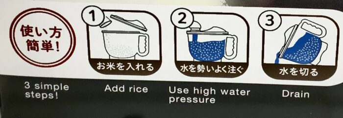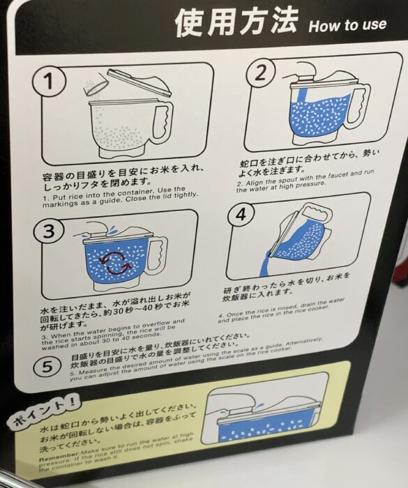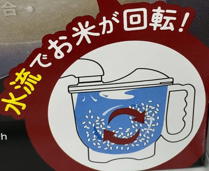 ③水を注いだまま、水が溢れ出しお米が回転してきたら、約30秒から40秒でお米が研げます。