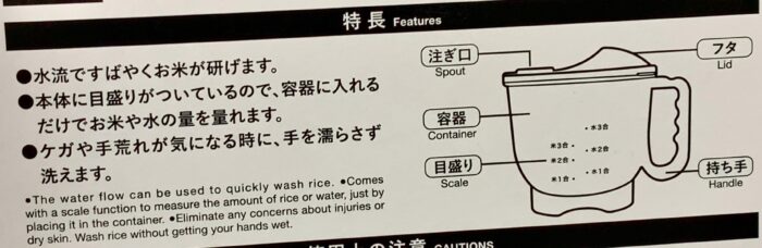 ・本体に目盛りがついているので、容器に入れるだけでお米や水の量を量れます。
