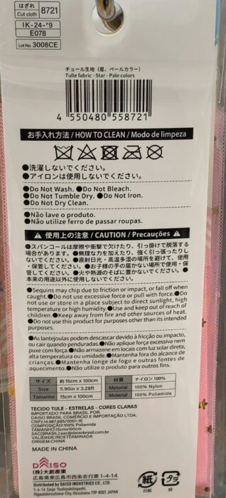 ・スパンコールは摩擦や衝撃で欠けたり、引っ掛けで脱落する場合があります。