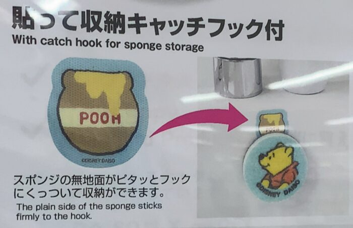 スポンジの無地面がピタッとフックにくっついて収納ができます
